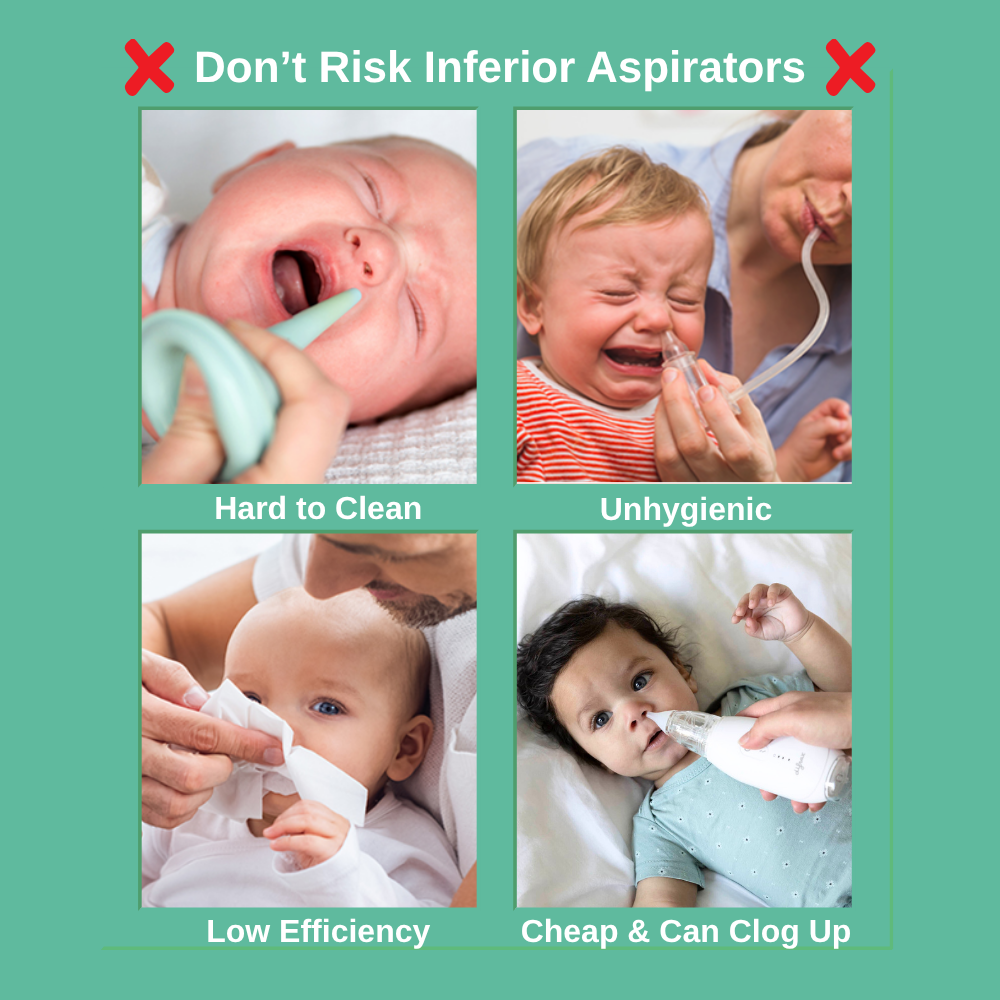 ✦ But the medical benefits of removing snot at the source (before it becomes a secondary chest or ear infection) far outweighs a moment of fuss and wriggle.