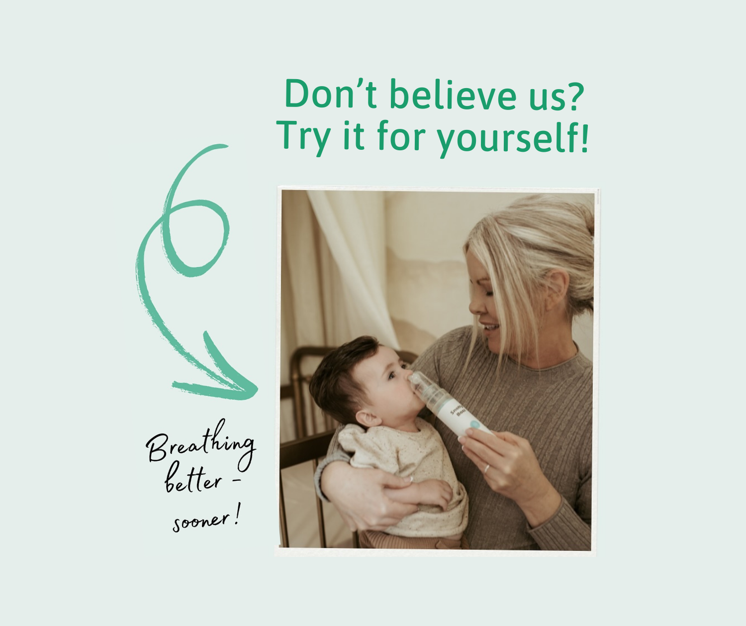 Blocked noses don’t have to mean endless tears and sleepless nights. With Snotty Boss, congestion clears in just seconds, helping kids breathe, feed, and sleep more comfortably – anytime, day or night.